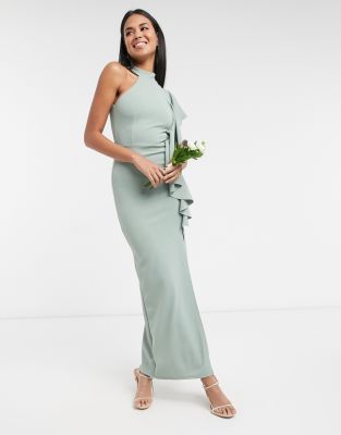 one shoulder sage green dress