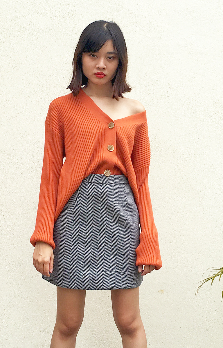 orange button down skirt