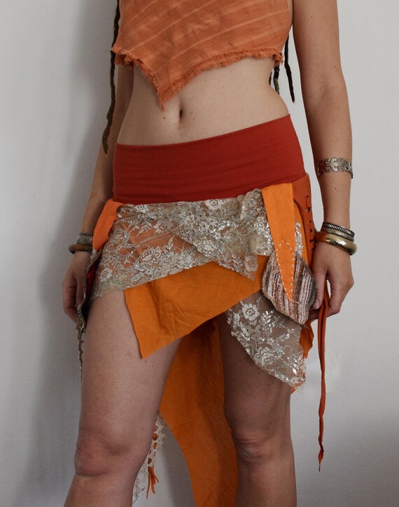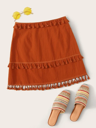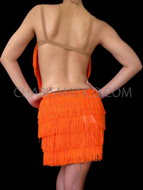 orange fringe skirt