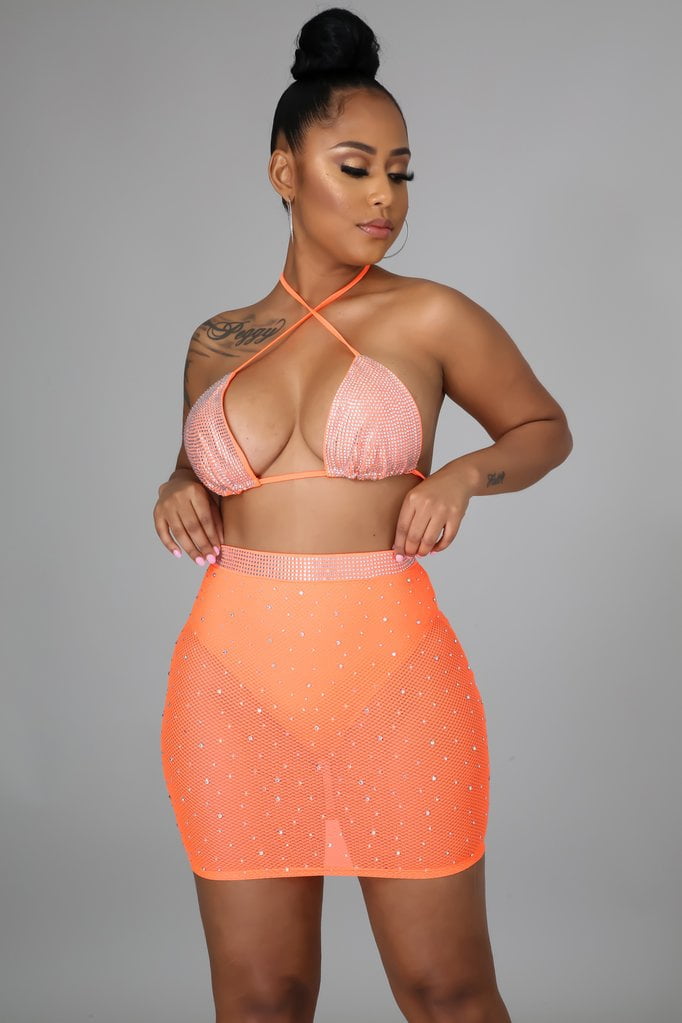 orange mesh skirt