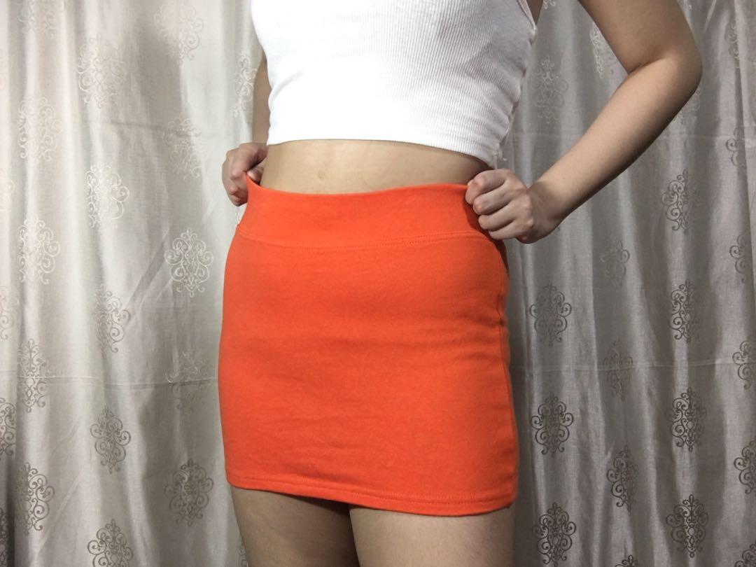 orange mini skirt
