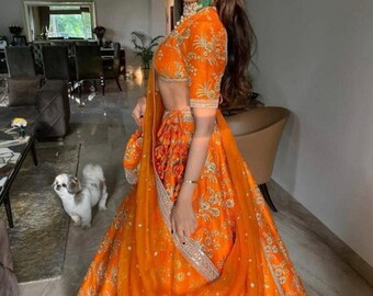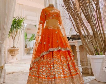 orange wedding lehenga