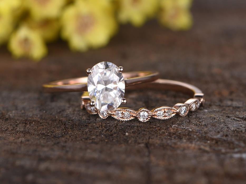 oval solitaire wedding set