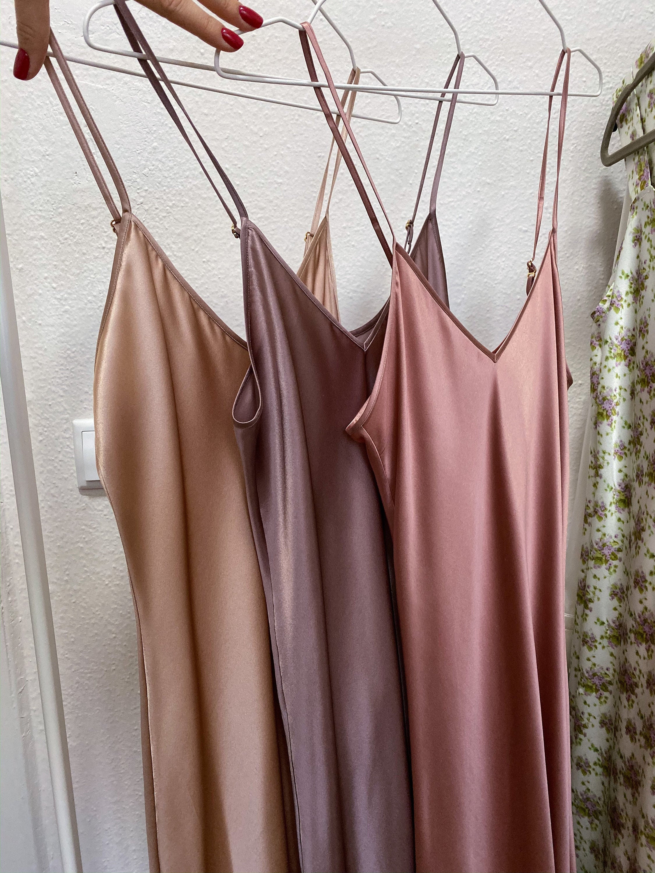 painted pastel satin midi slip dress