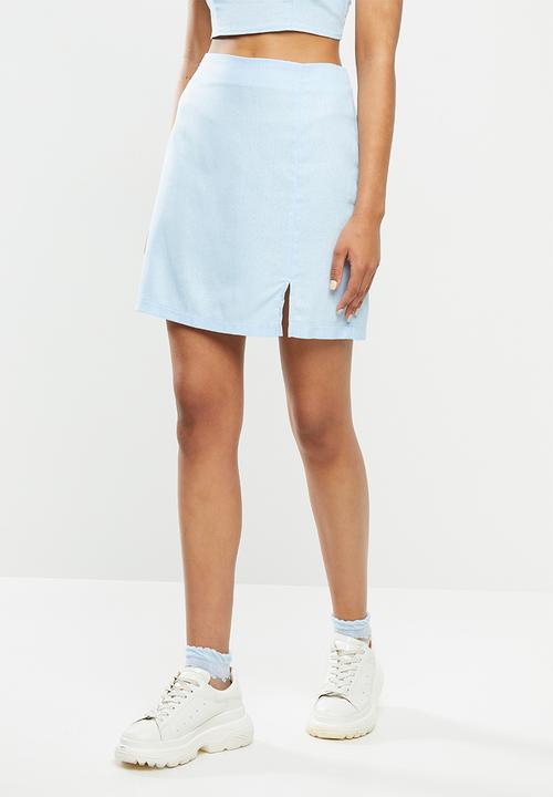 pastel blue mini skirt