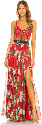 patbo peony print bustier maxi dress with belt