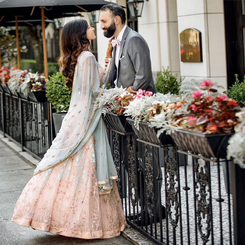 peach lehenga for bride