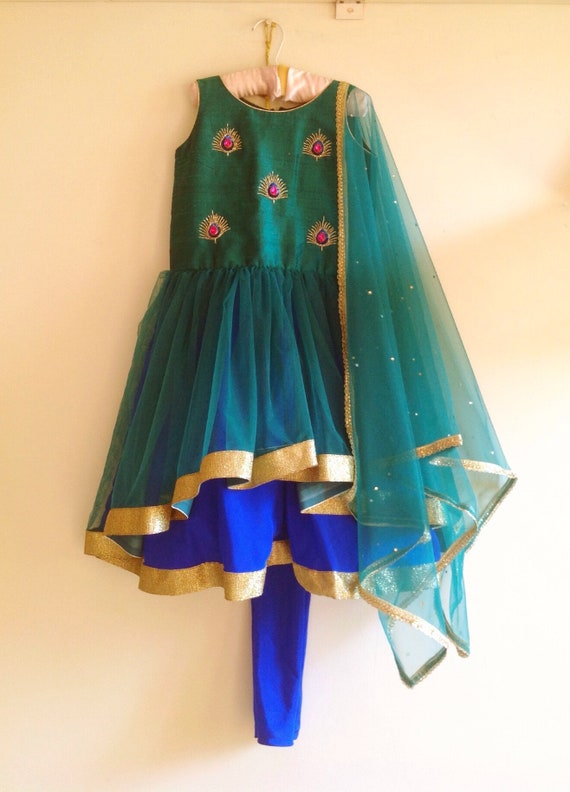 peacock colour anarkali