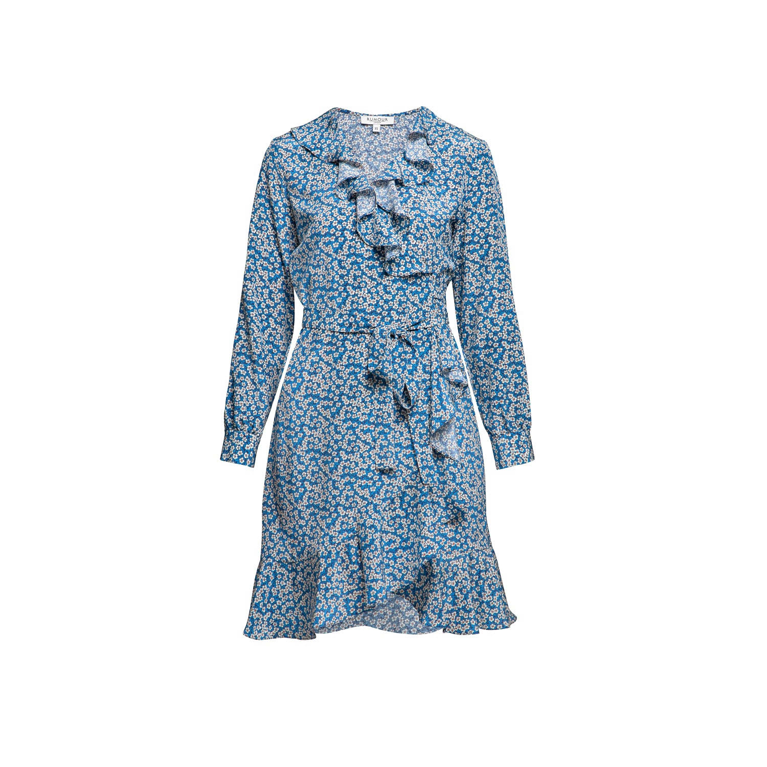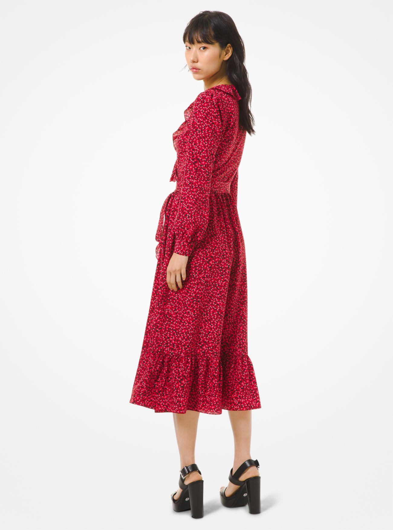 petal crepe wrap ruffle dress