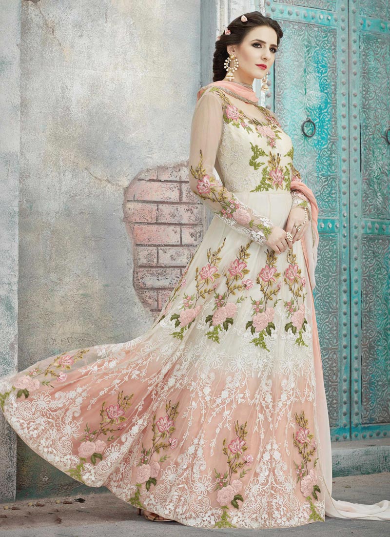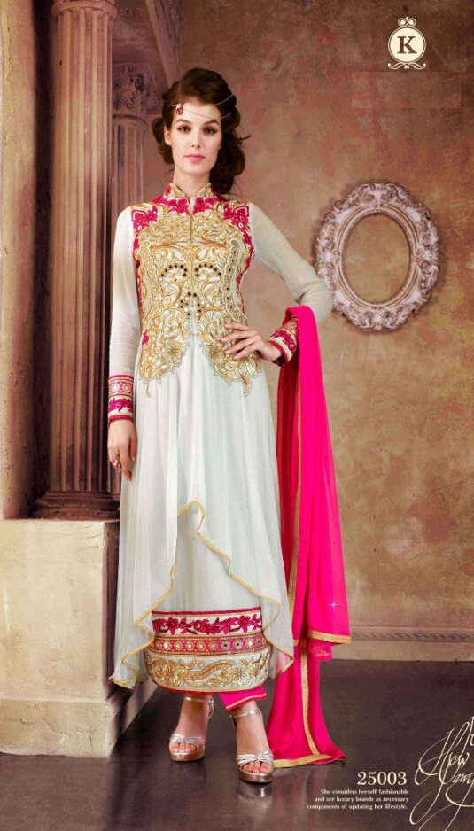pink and white anarkali