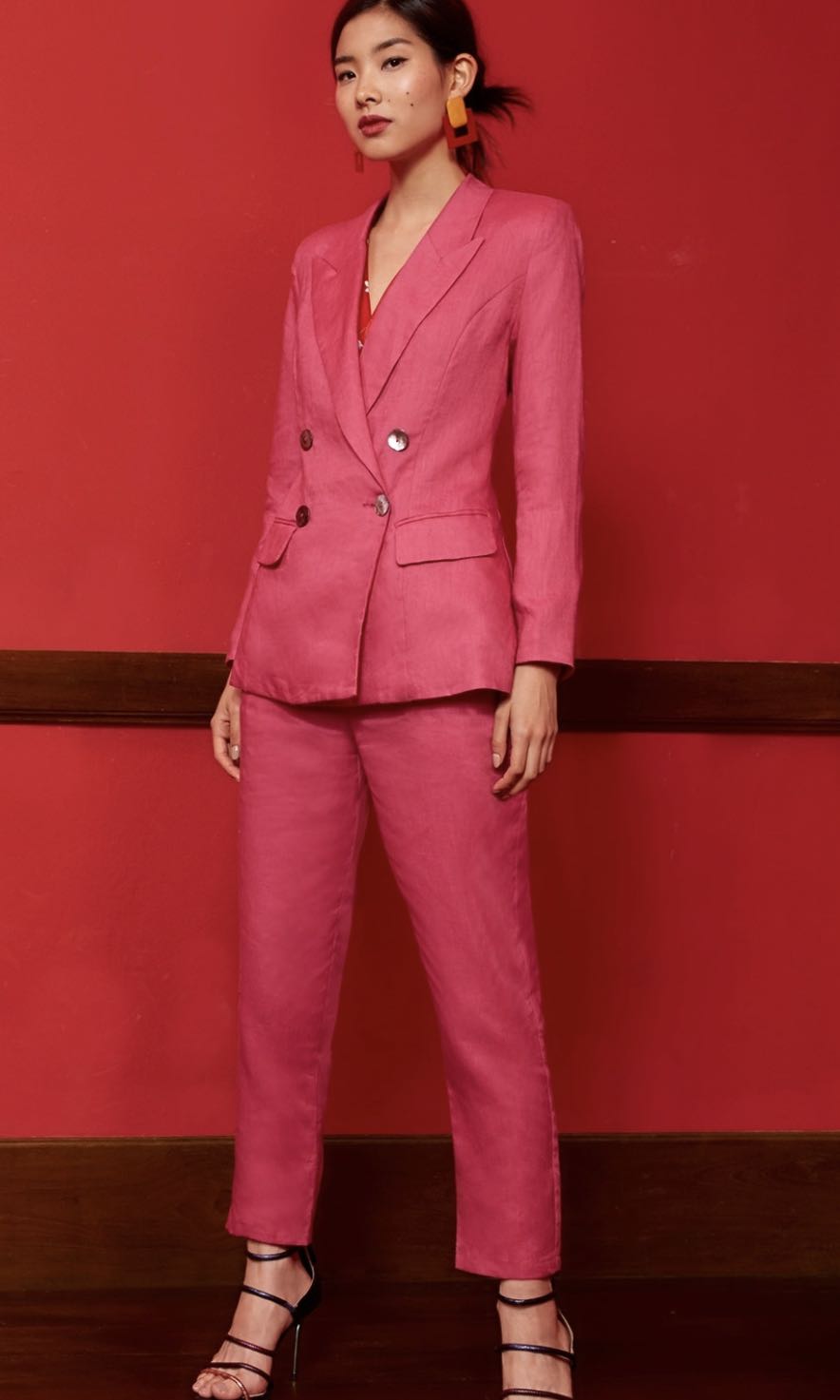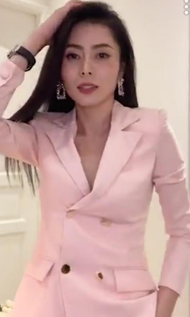 pink blazer with belt
