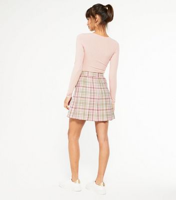 pink checked mini skirt