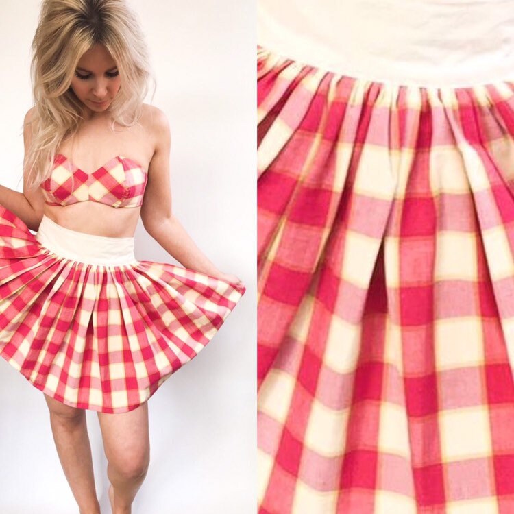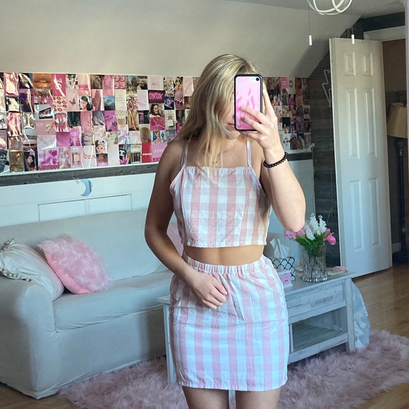 pink checkered two piece set
