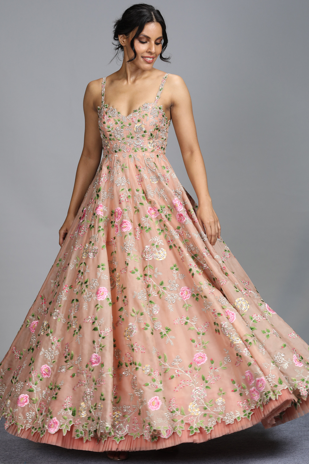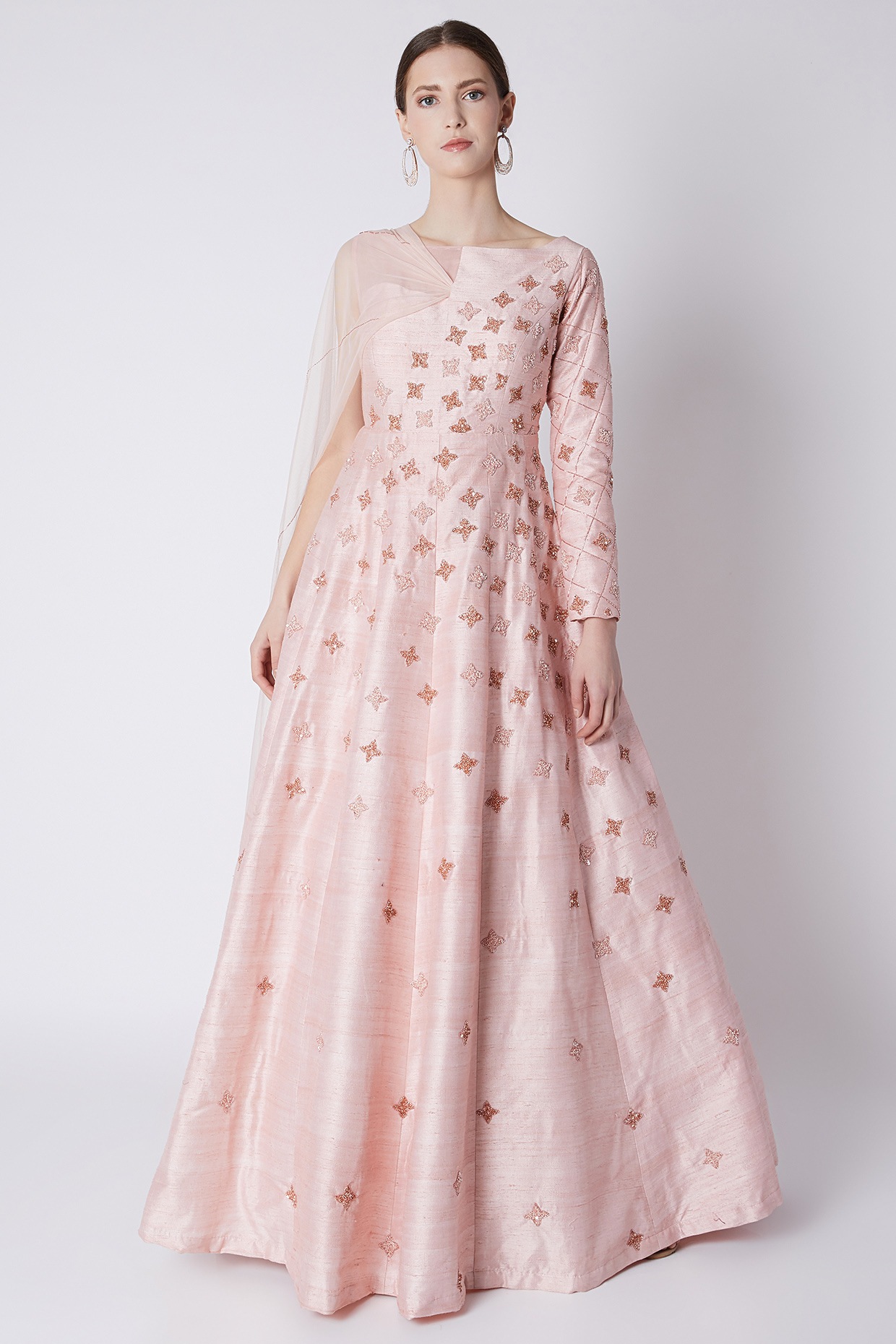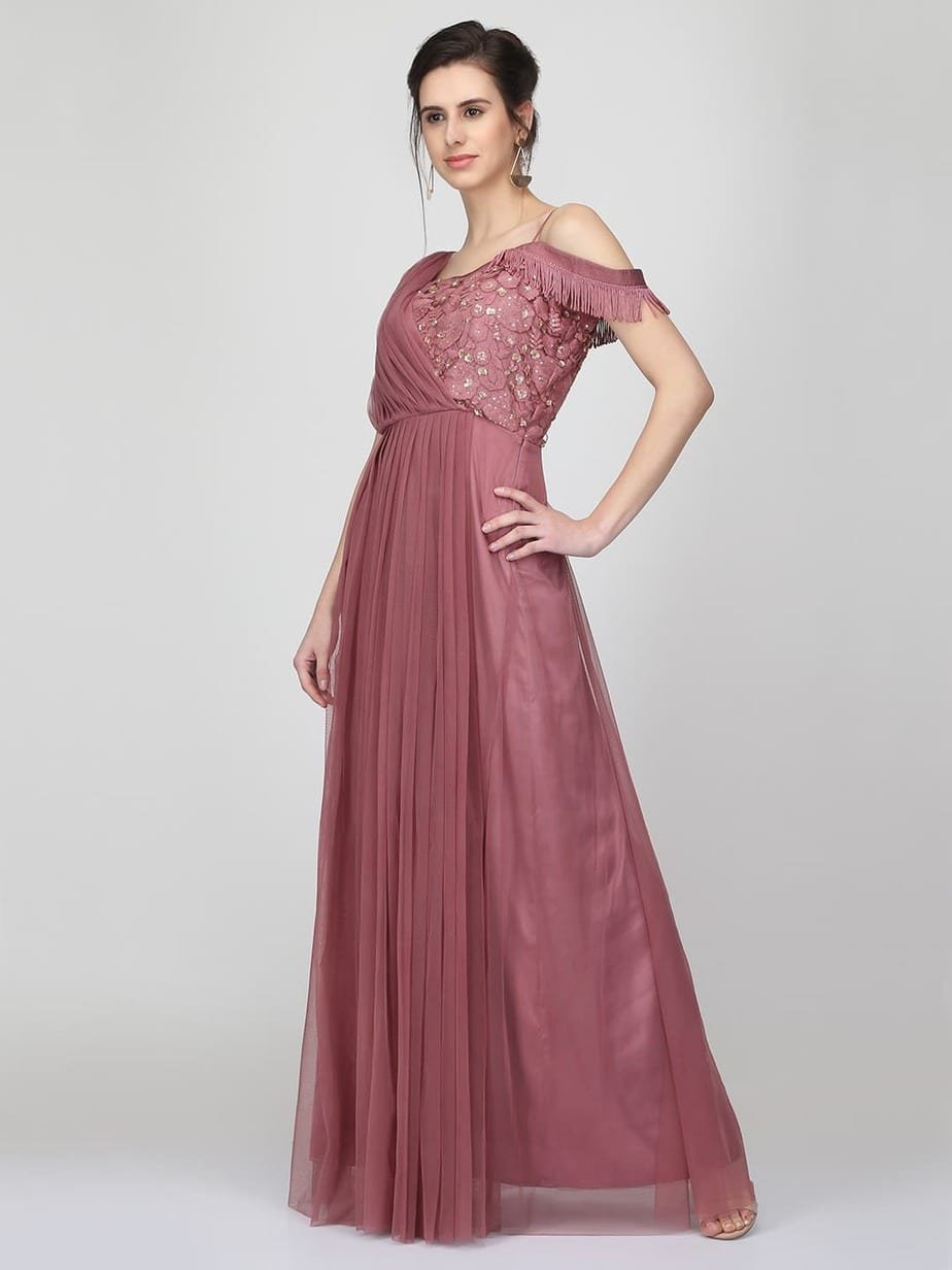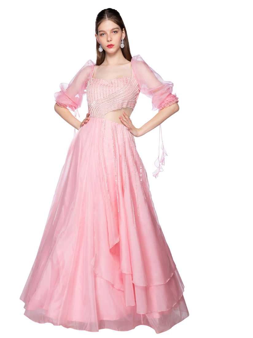 pink embroidered gown