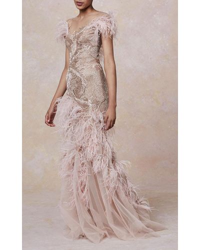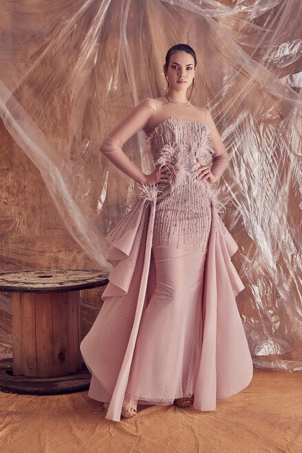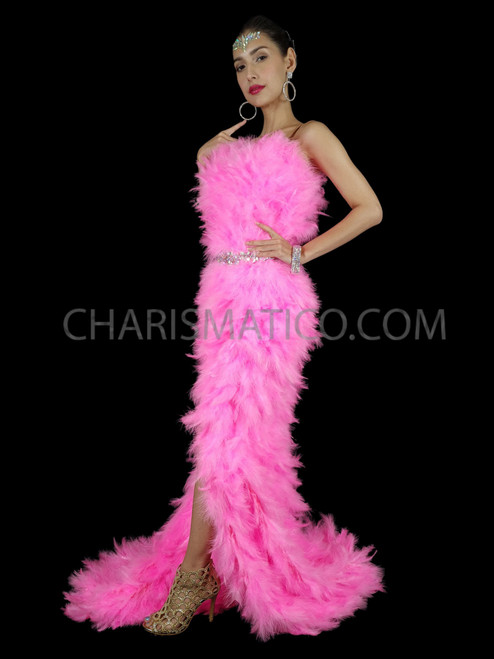 pink feather gown