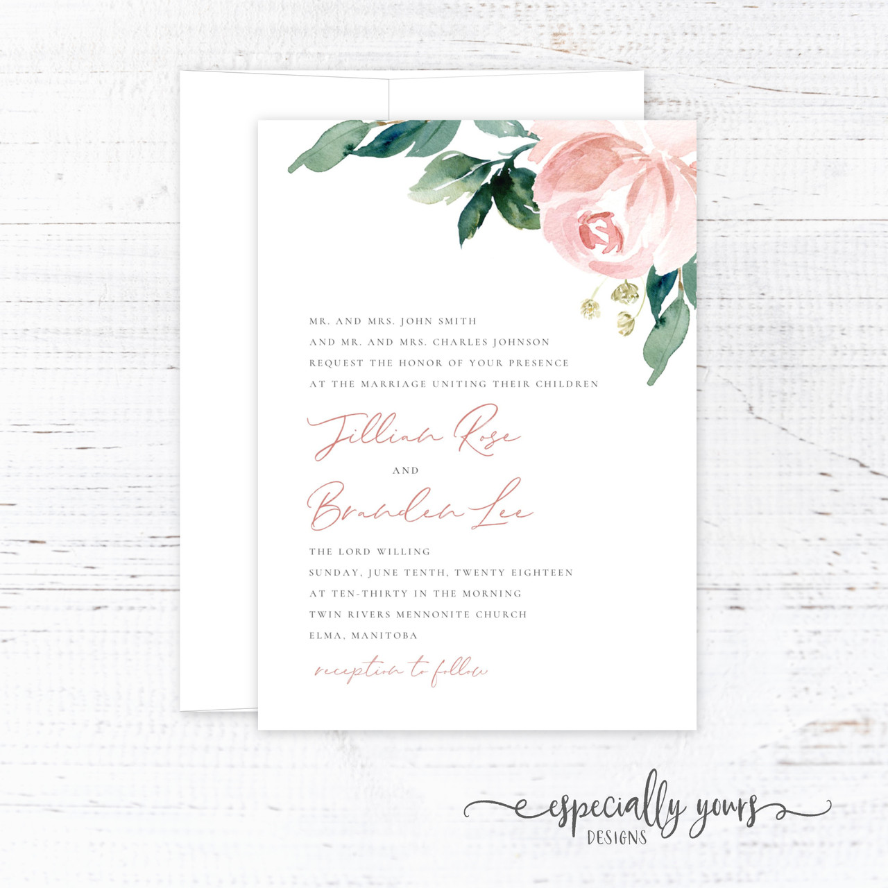 pink floral invitation
