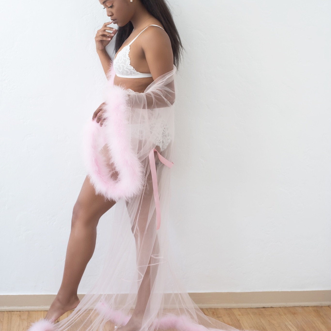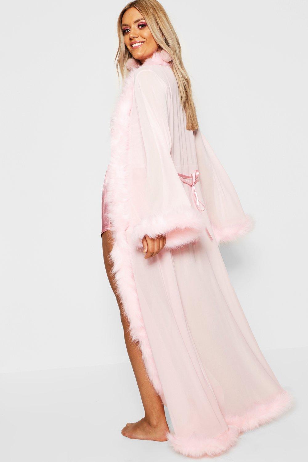 pink fluffy trim robe