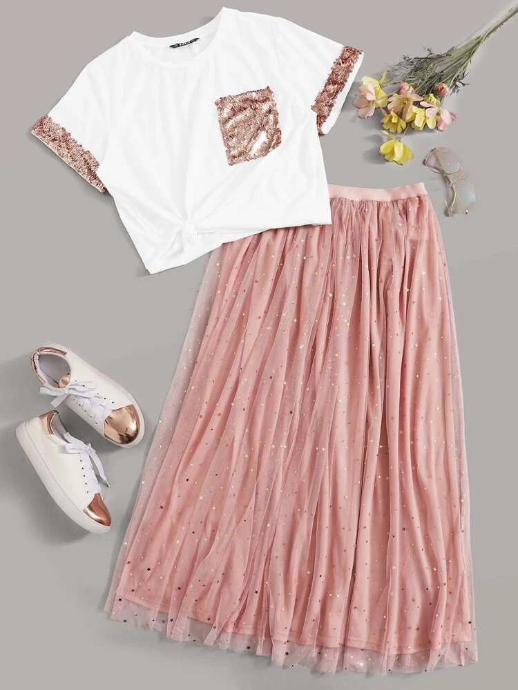 pink mesh skirt set