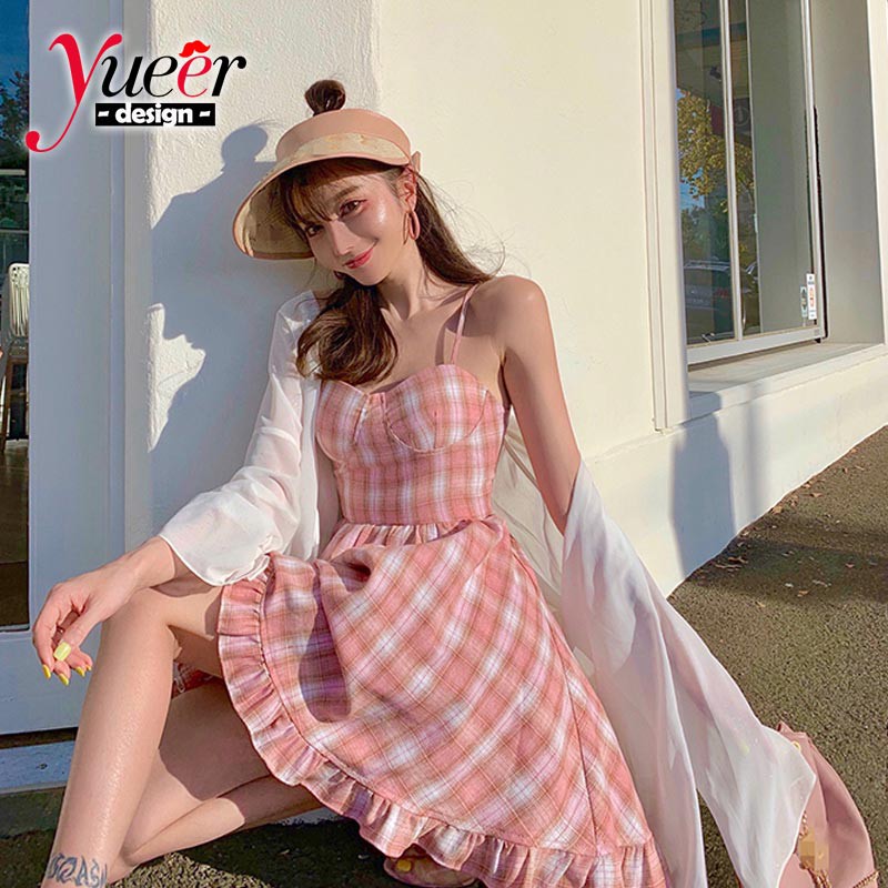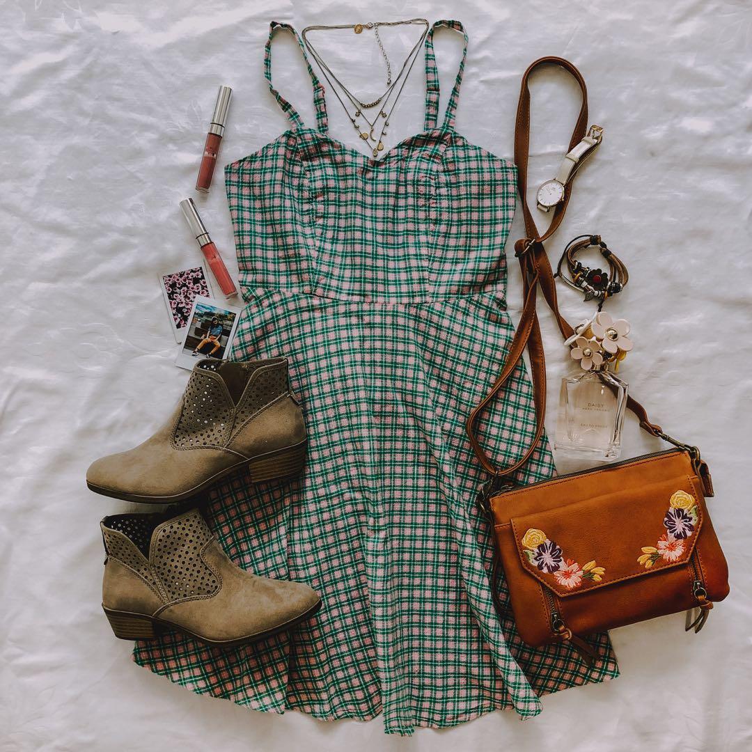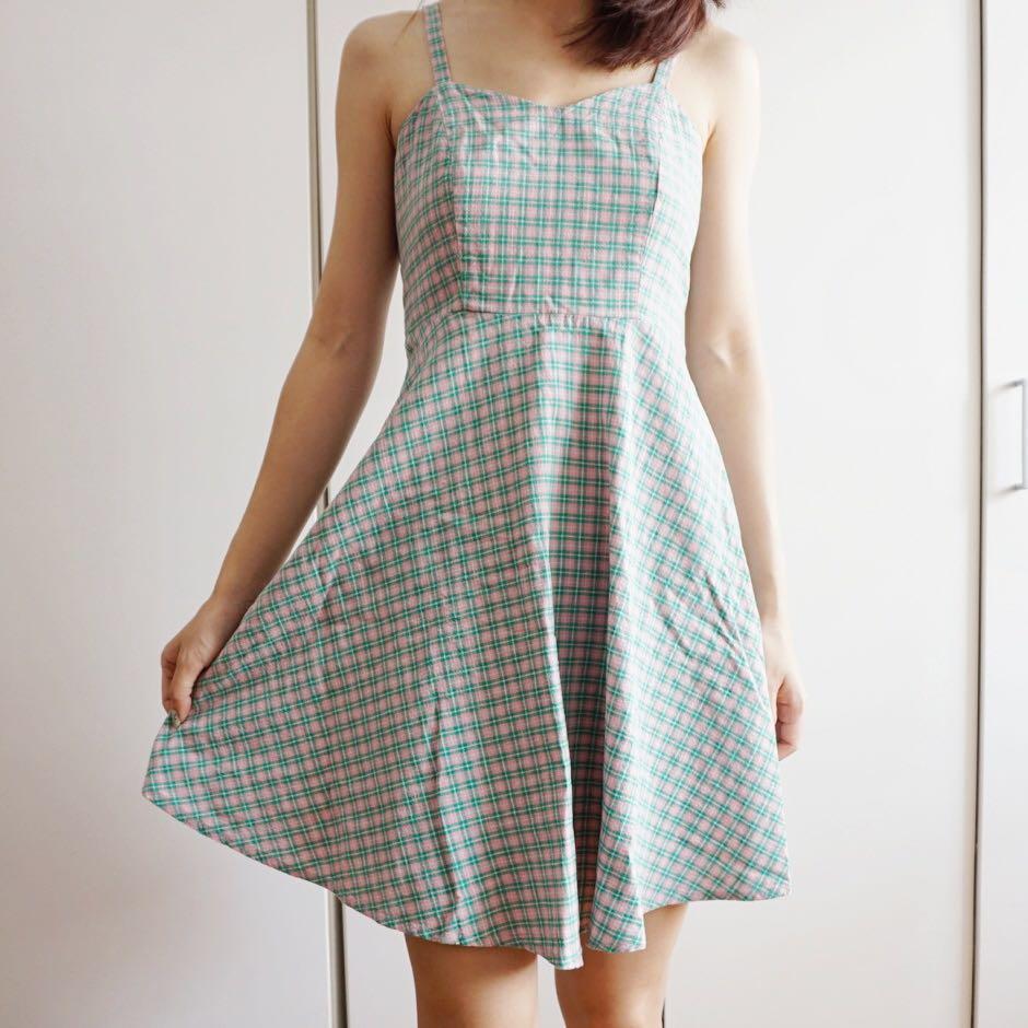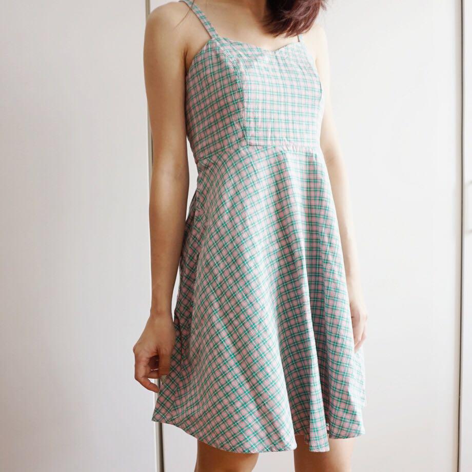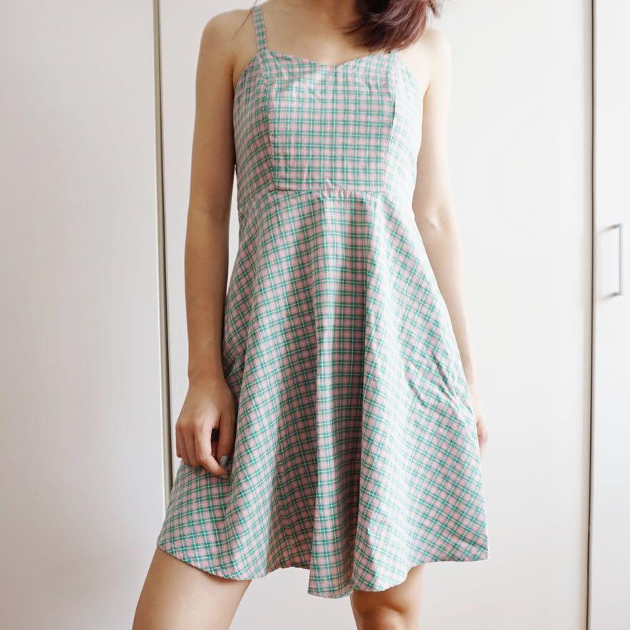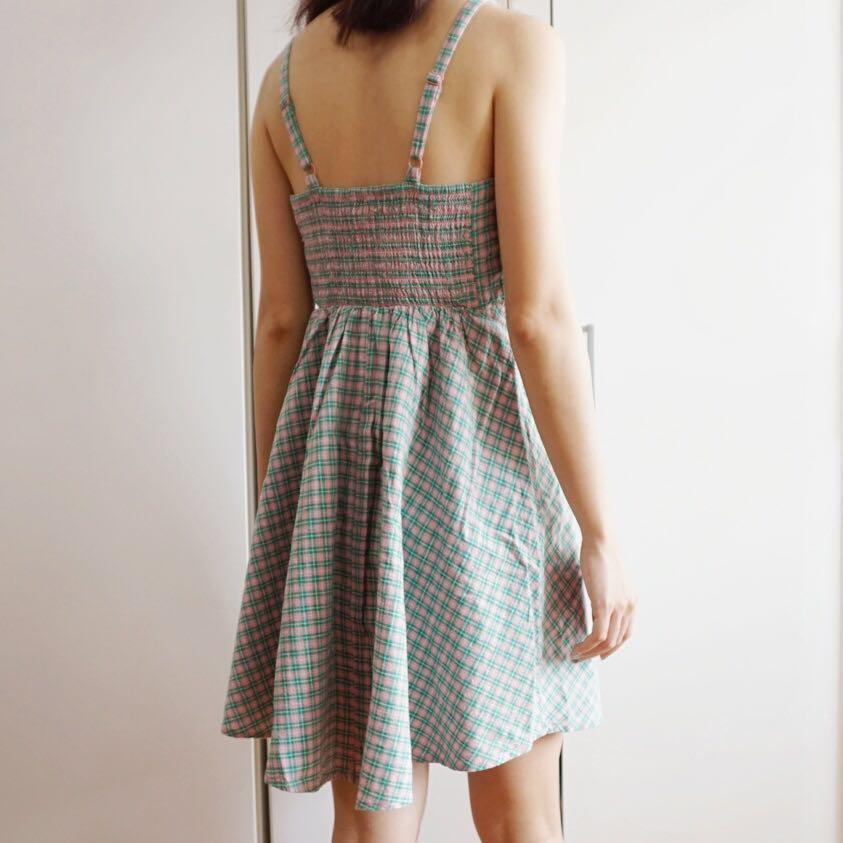 pink plaid cami dress
