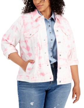 pink plus size denim jacket