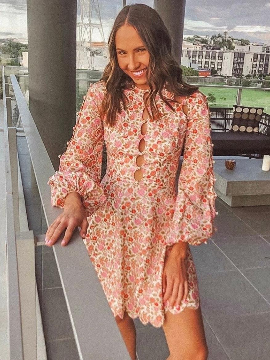 pink scallop dress