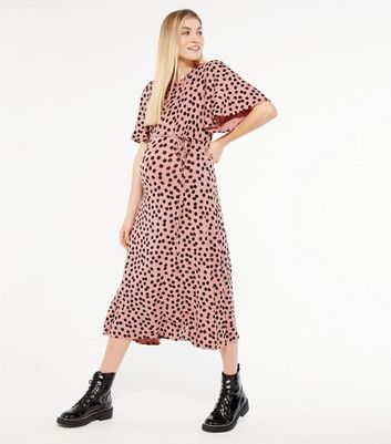 pink spot midi dress