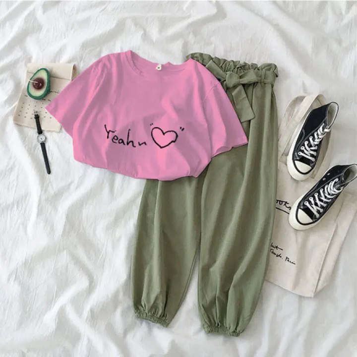 pink two piece set pants