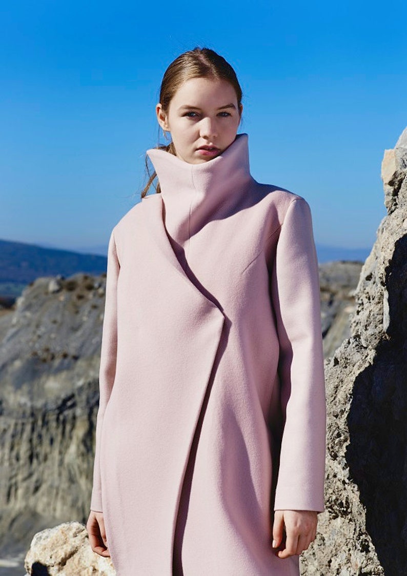 pink wool coat plus size