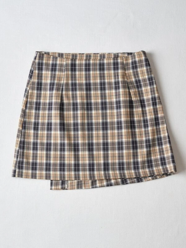 plaid button skirt