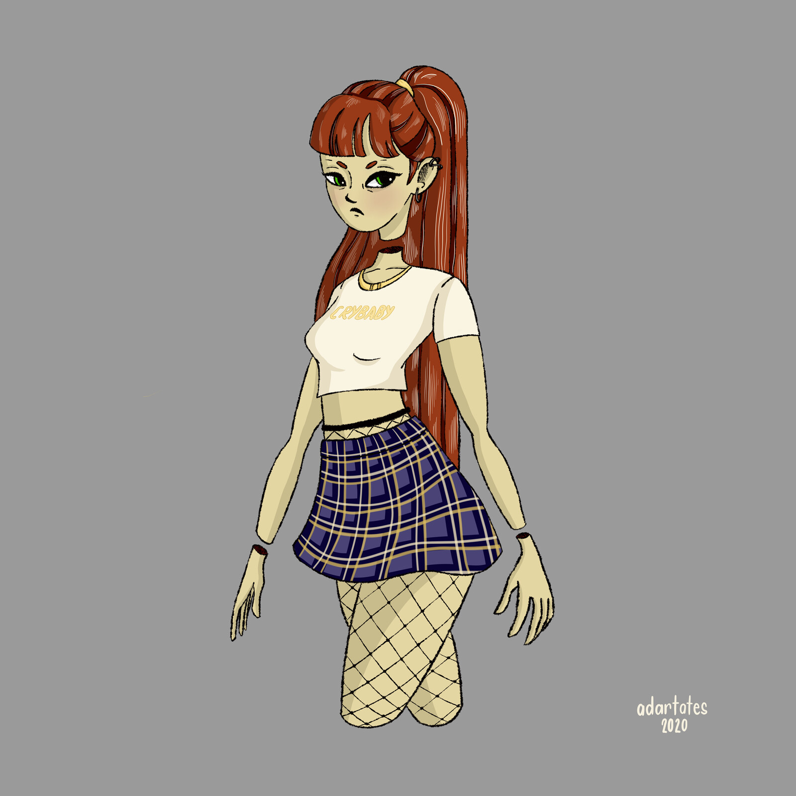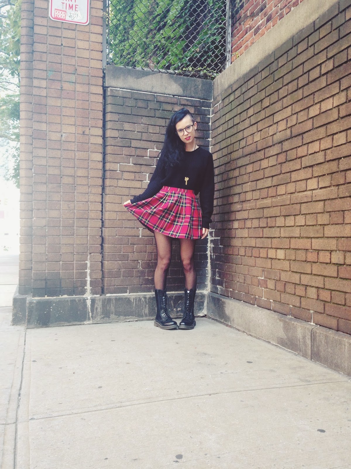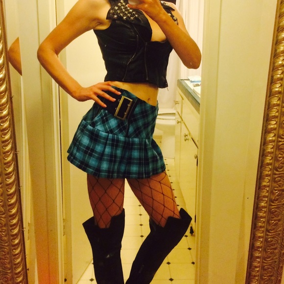 plaid skirt with fishnets