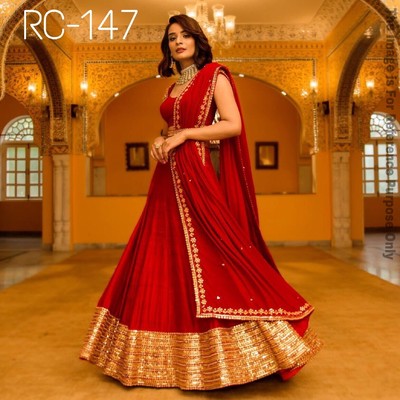 plain red lehenga with border