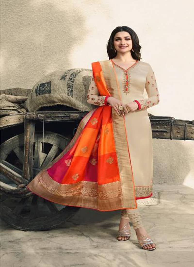 plain suit design with banarasi dupatta