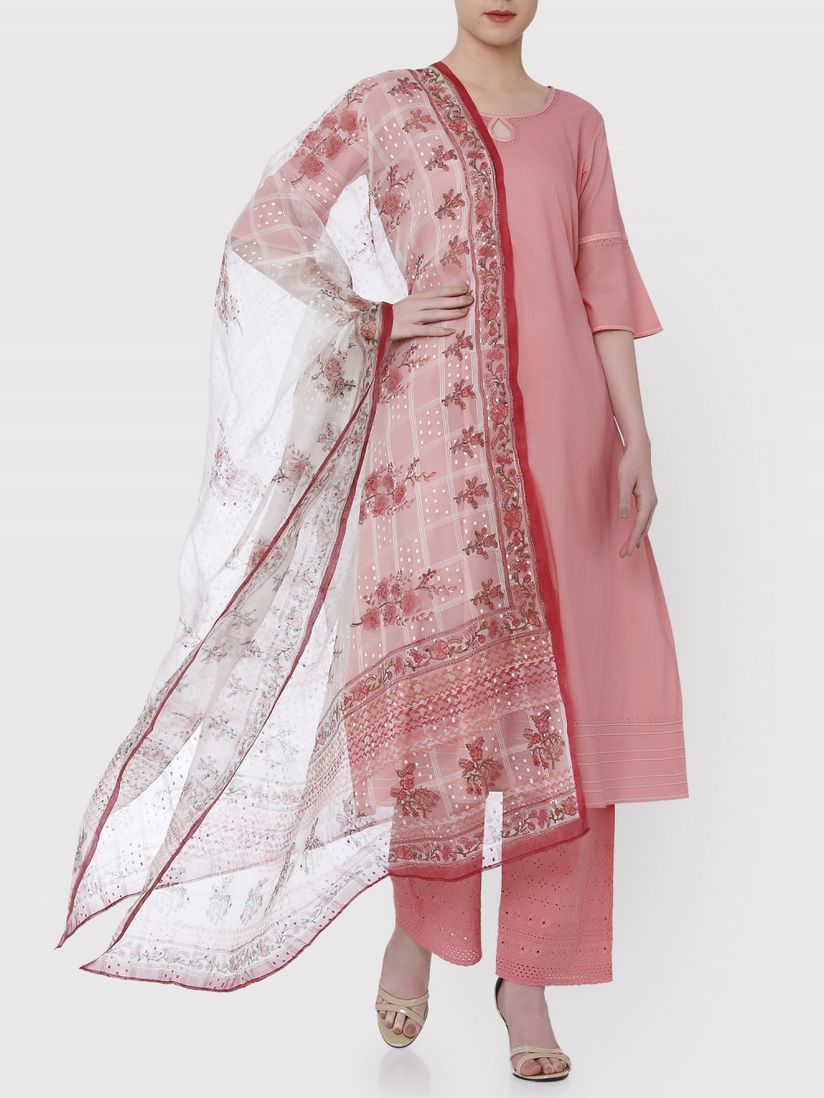 plain suit printed dupatta