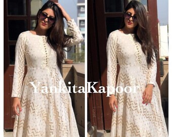 plain white anarkali kurta