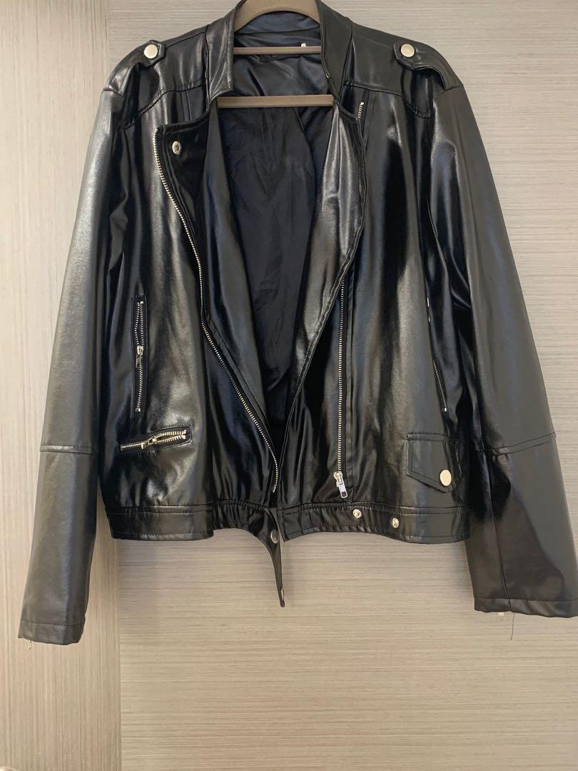 plus black leather jacket