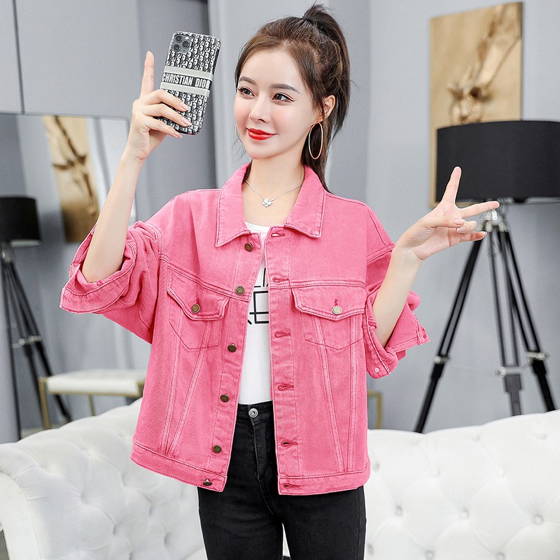 plus pink denim jacket