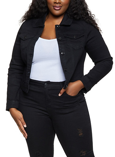 plus size black denim jacket womens