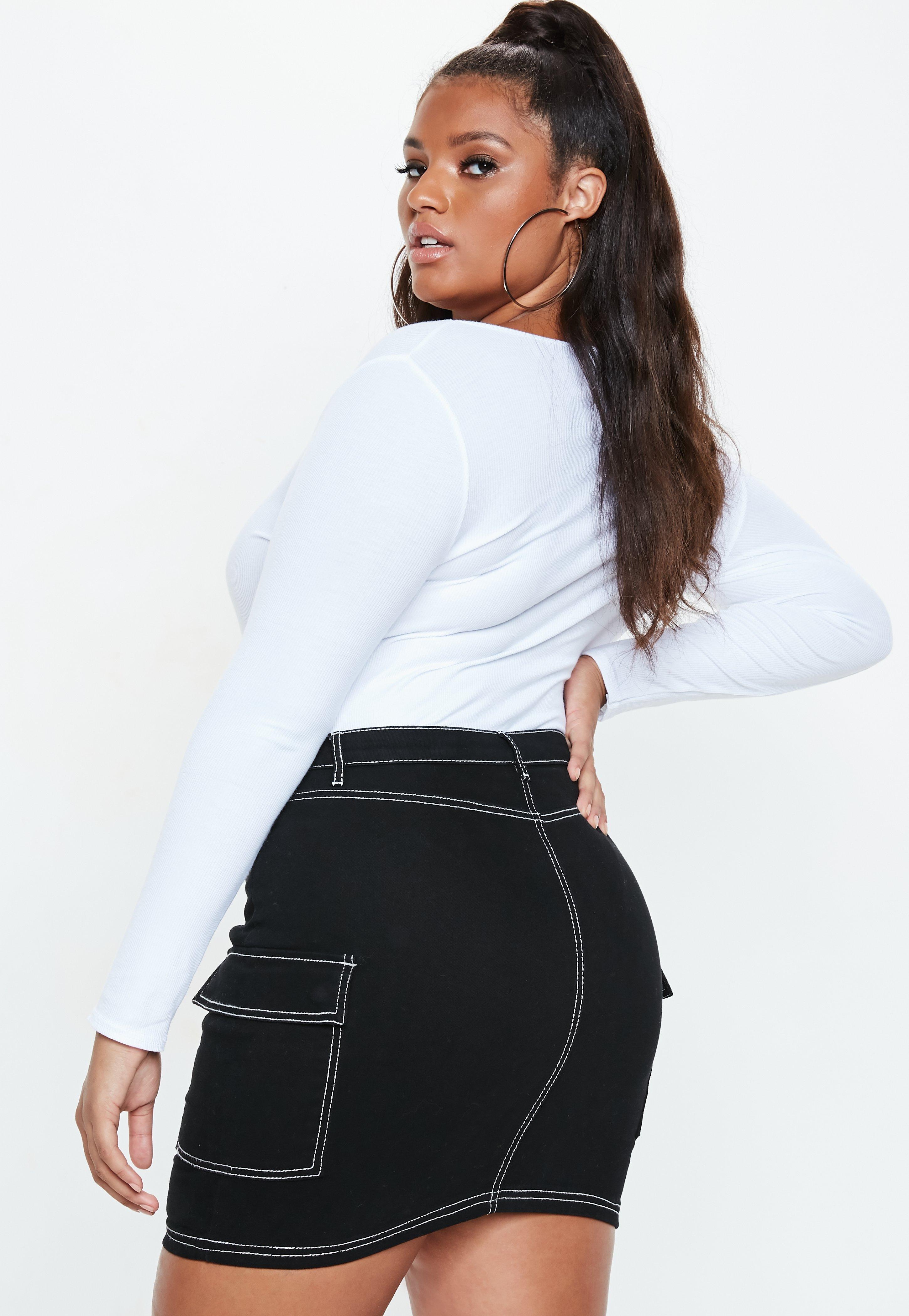 plus size black denim skirt