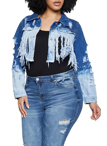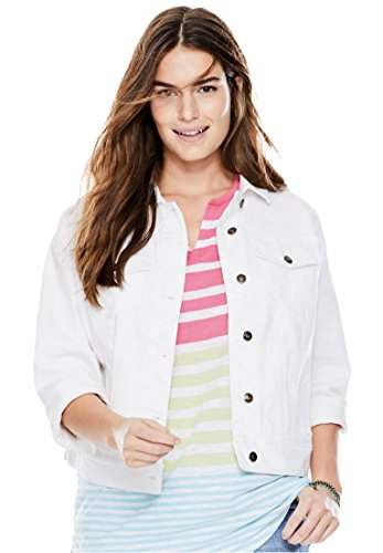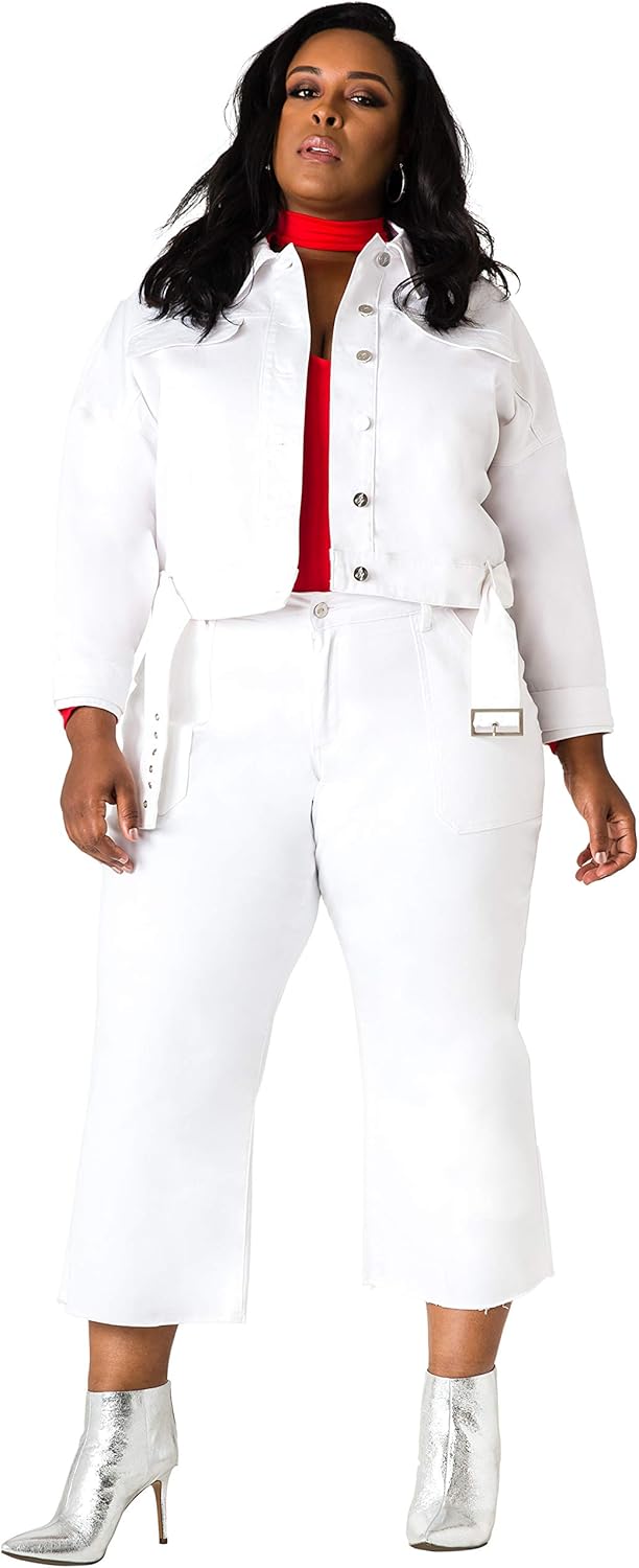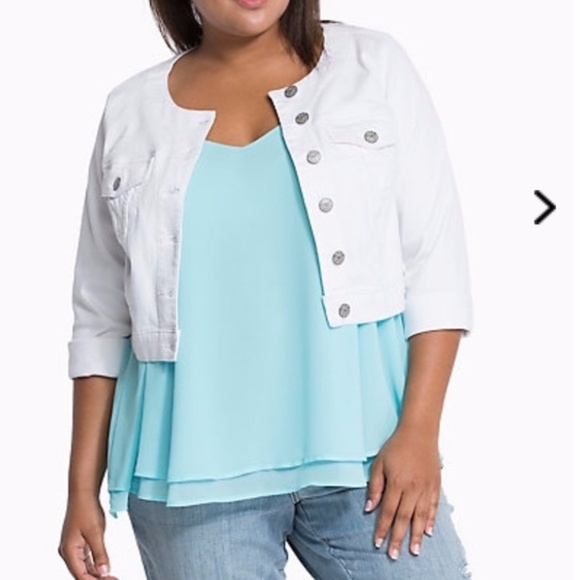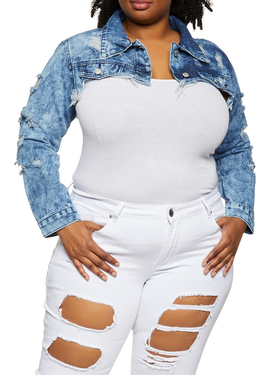 plus size cropped white denim jacket