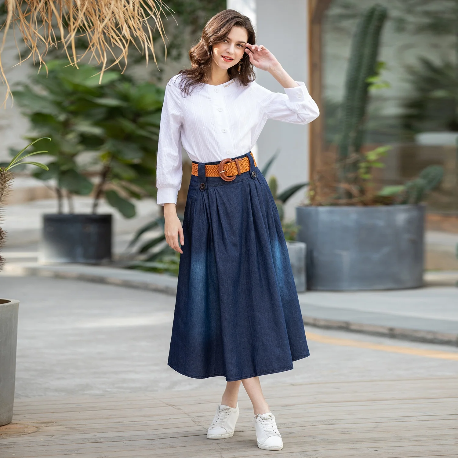 plus size denim maxi skirt