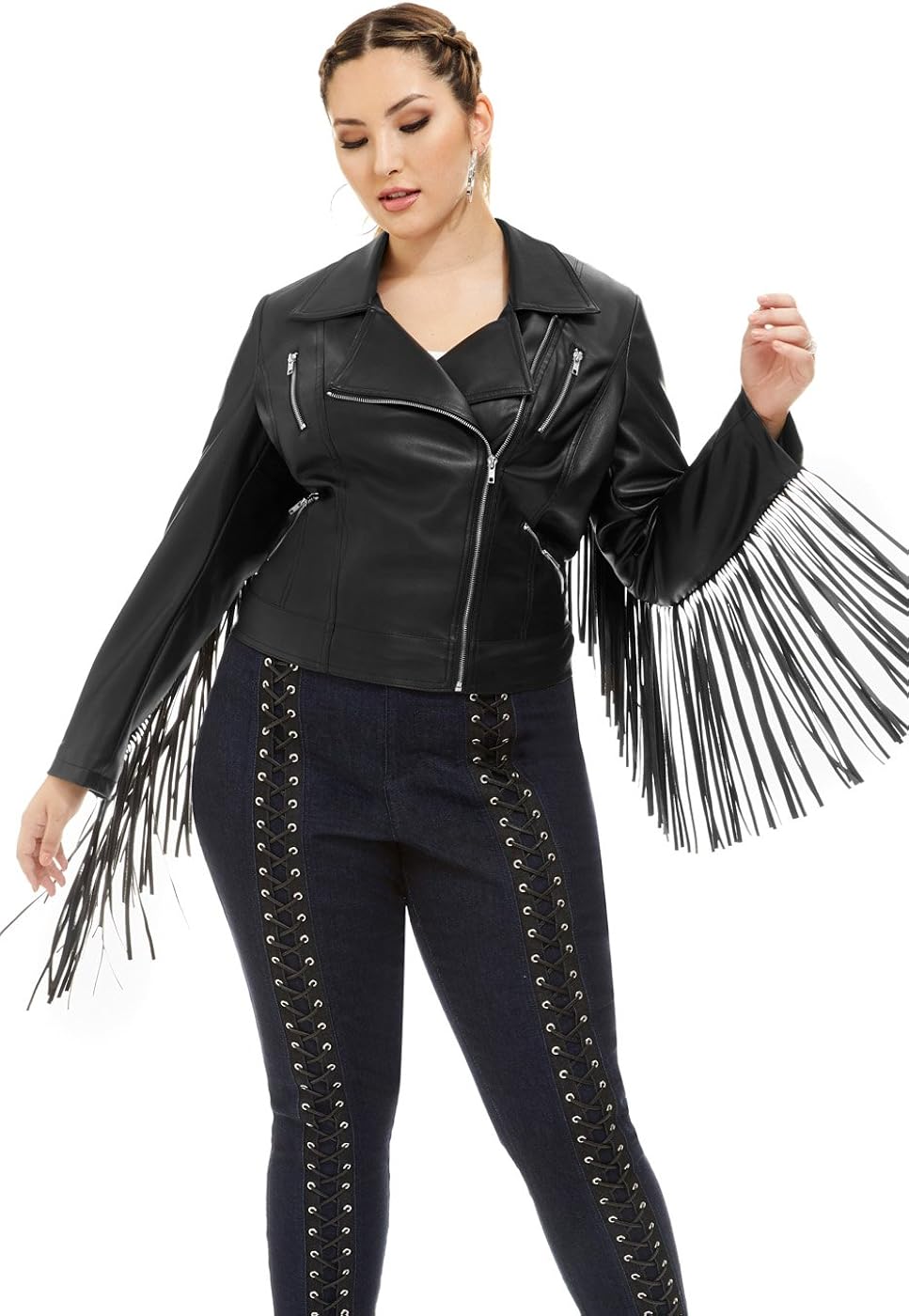 plus size fringe jacket