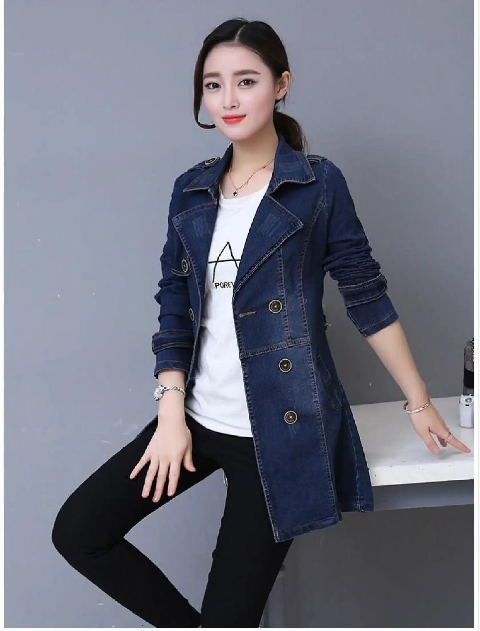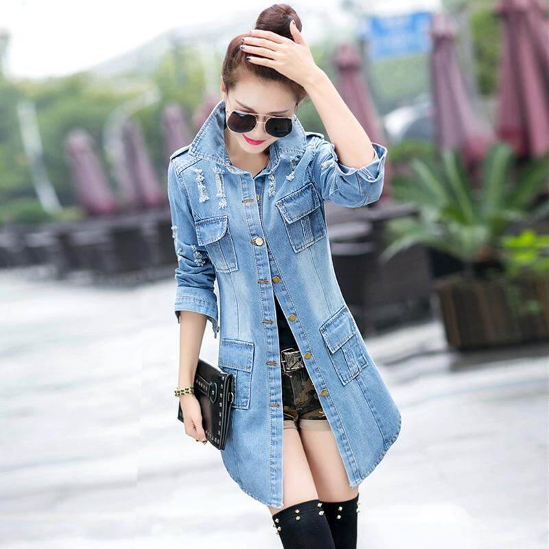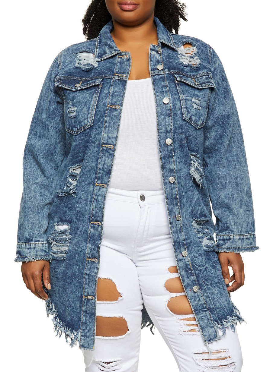 plus size long denim jacket
