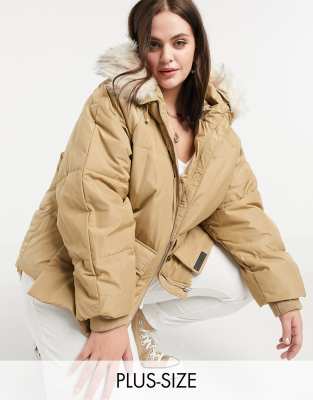 plus size puffer jacket with fur hood