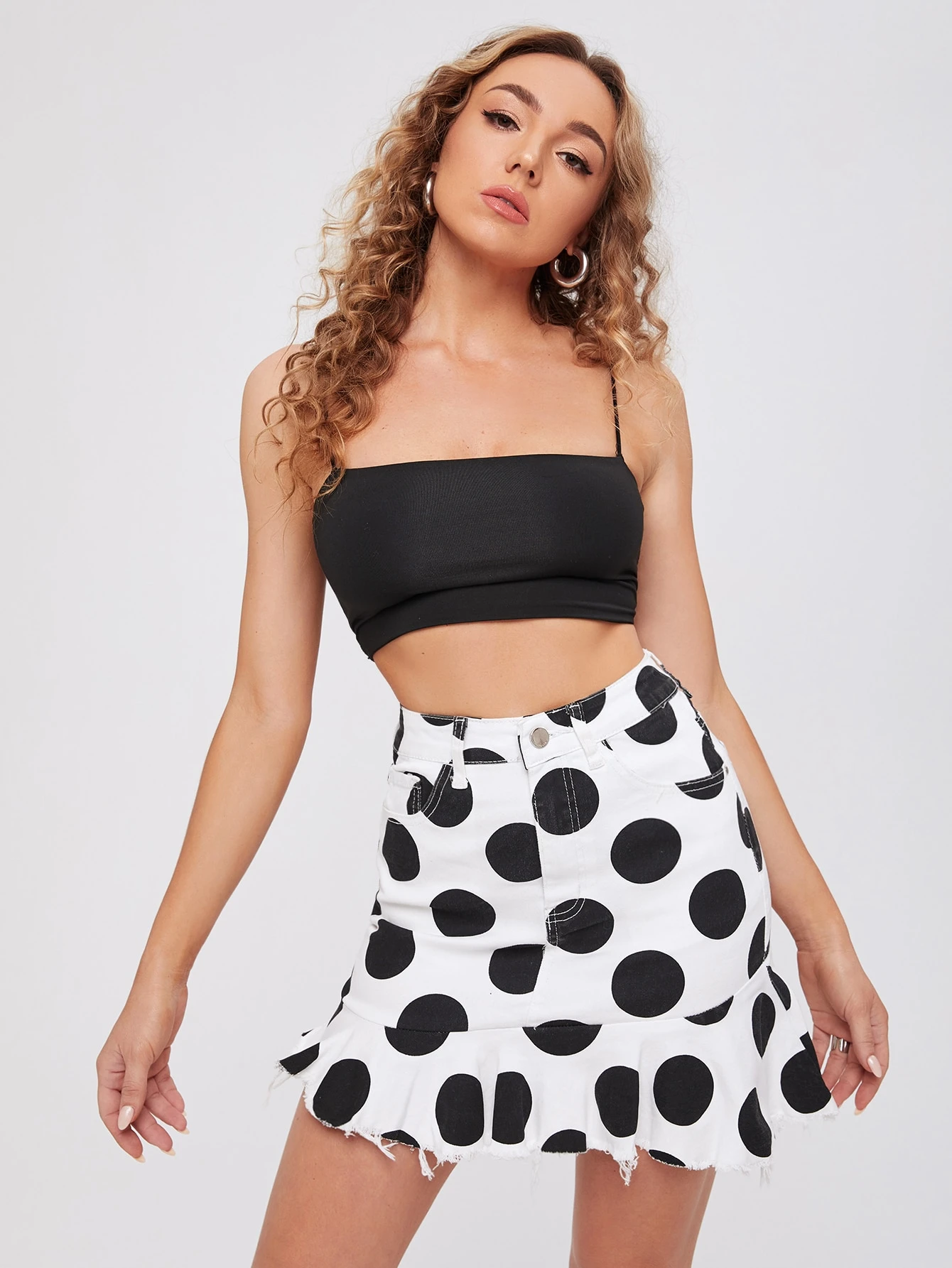 polka dot denim skirt
