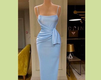 powder blue satin dress