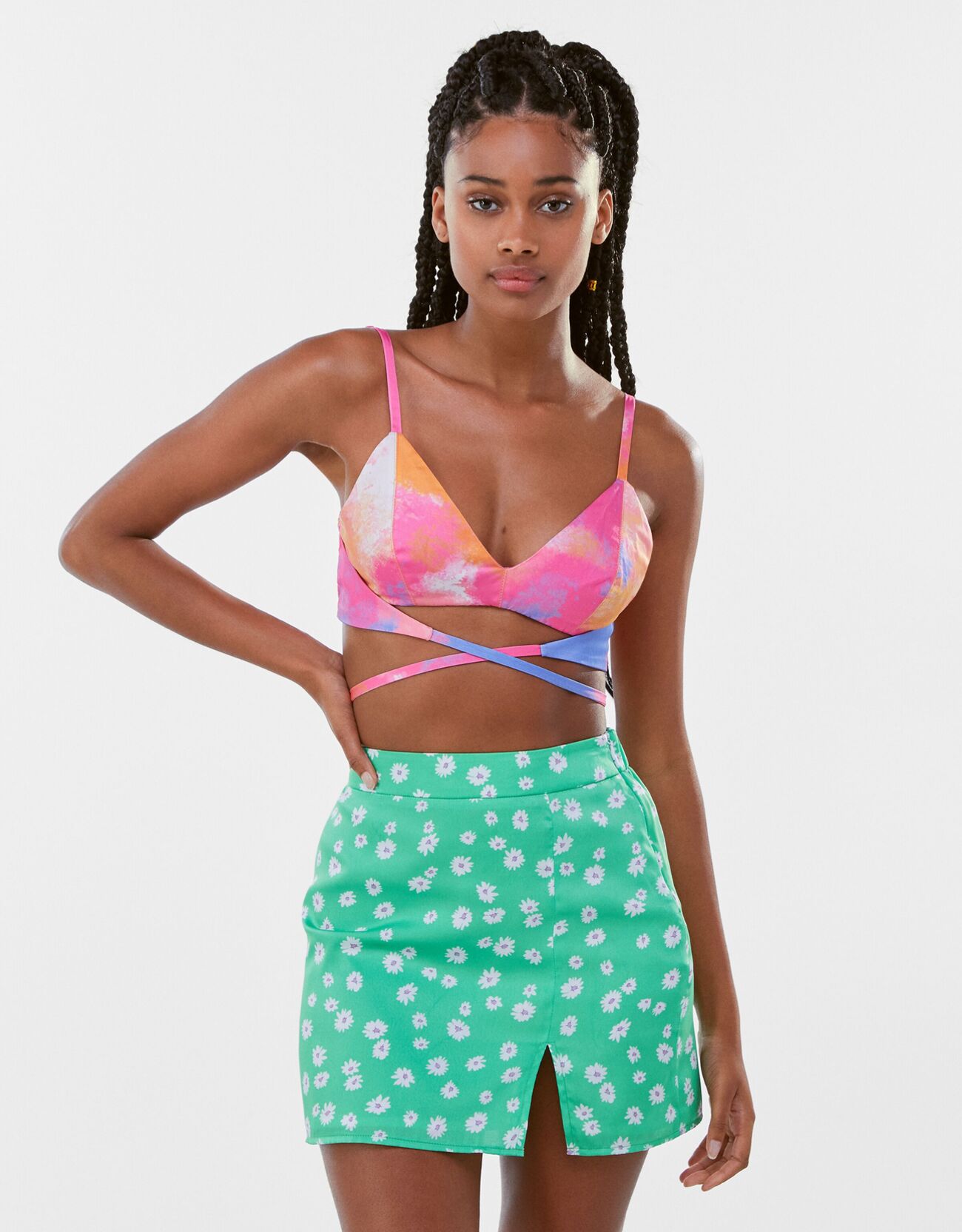 printed mini skirt