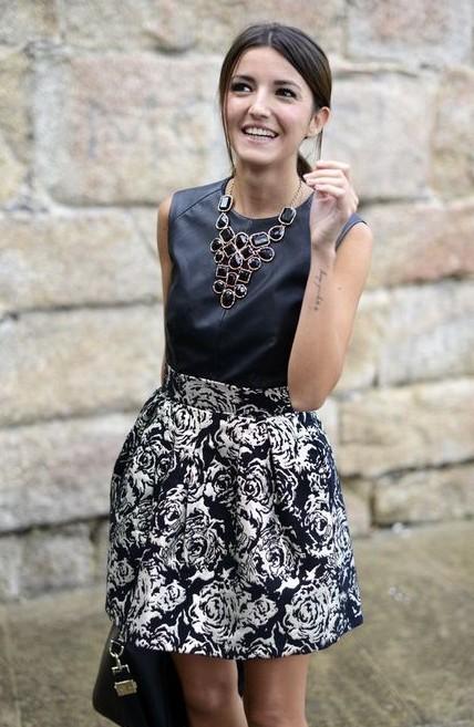 printed skirt with plain top