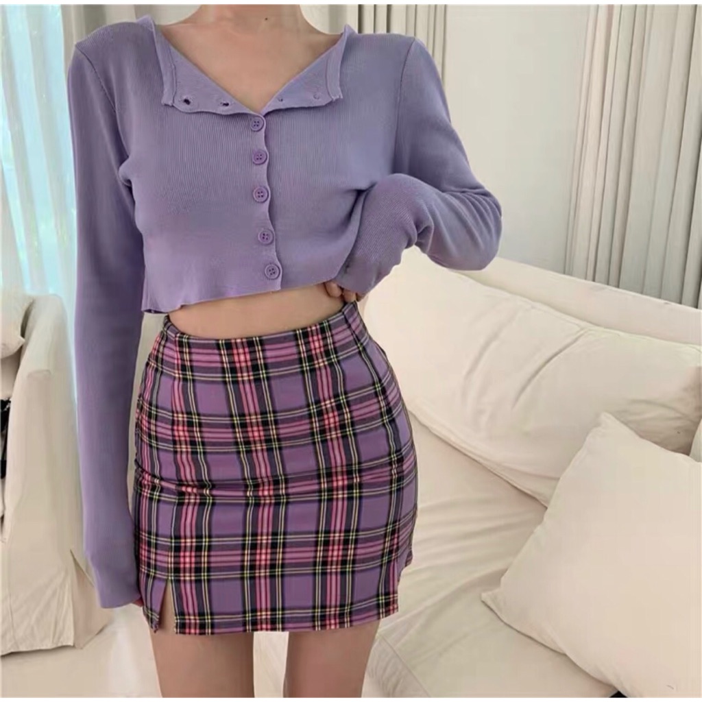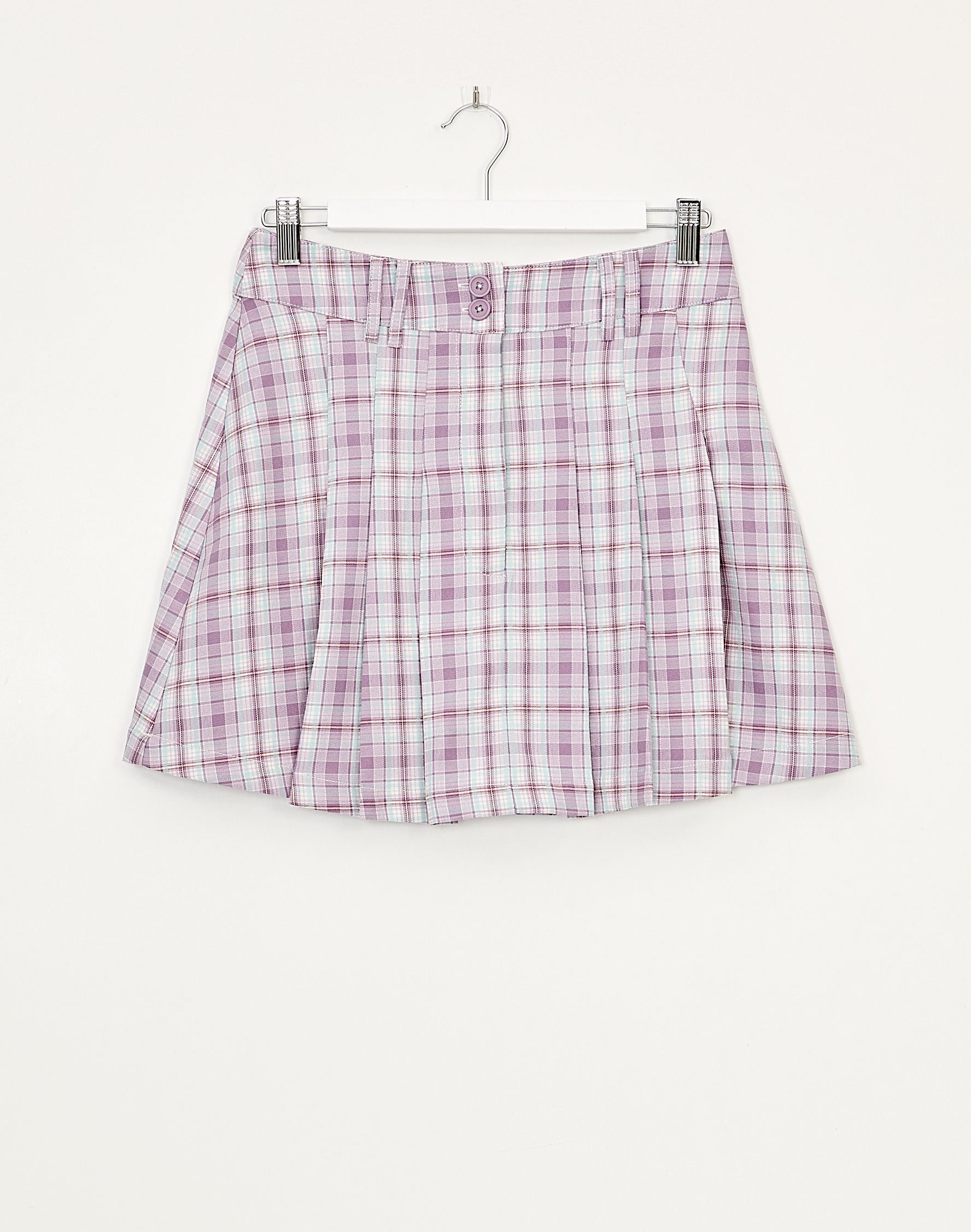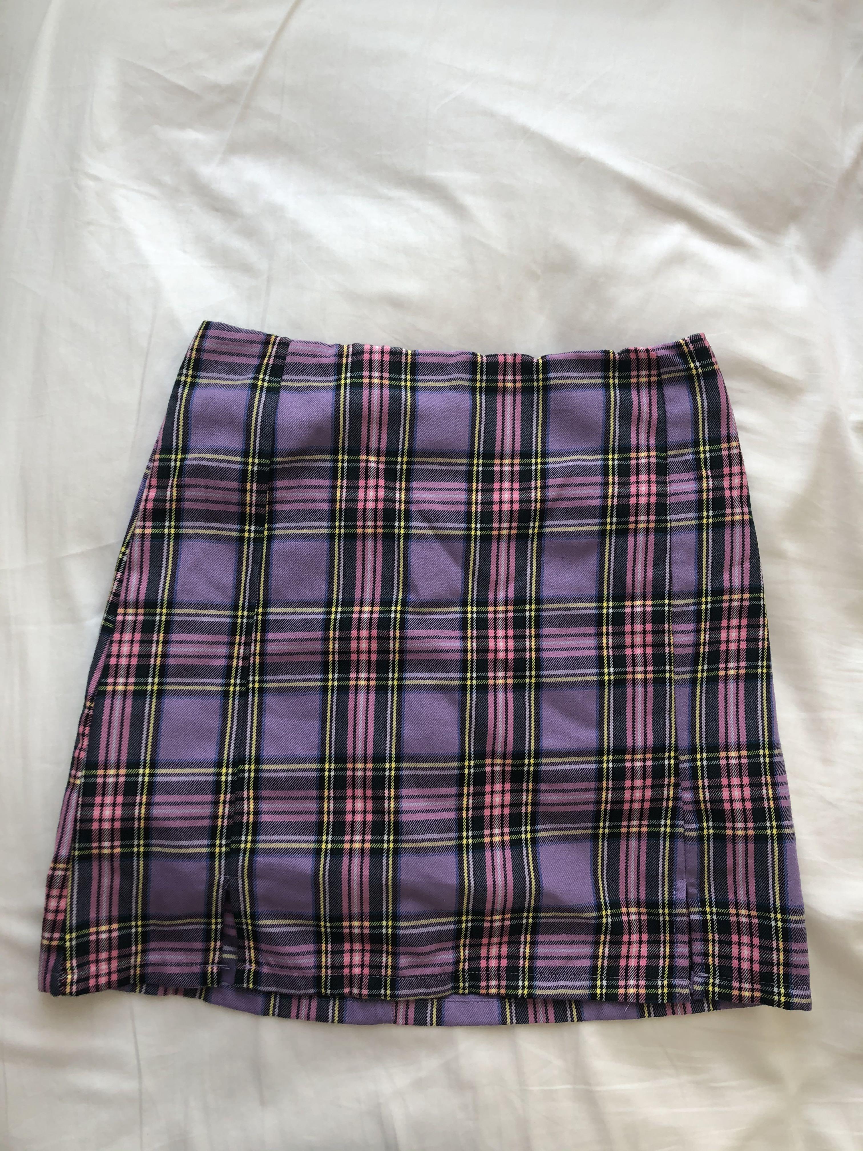purple check skirt