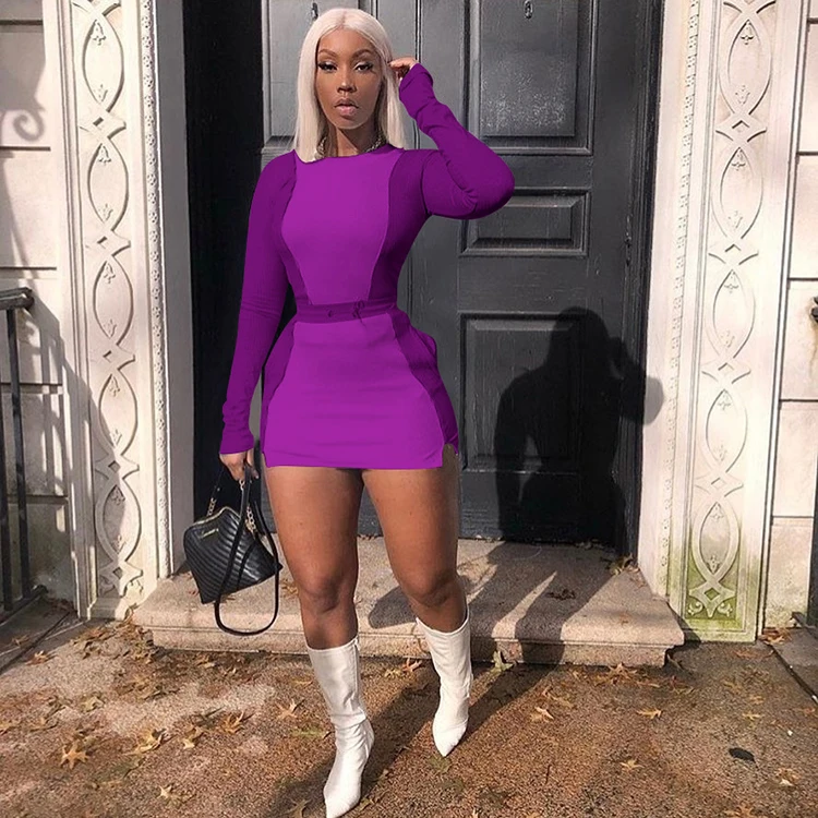 purple two piece skirt set