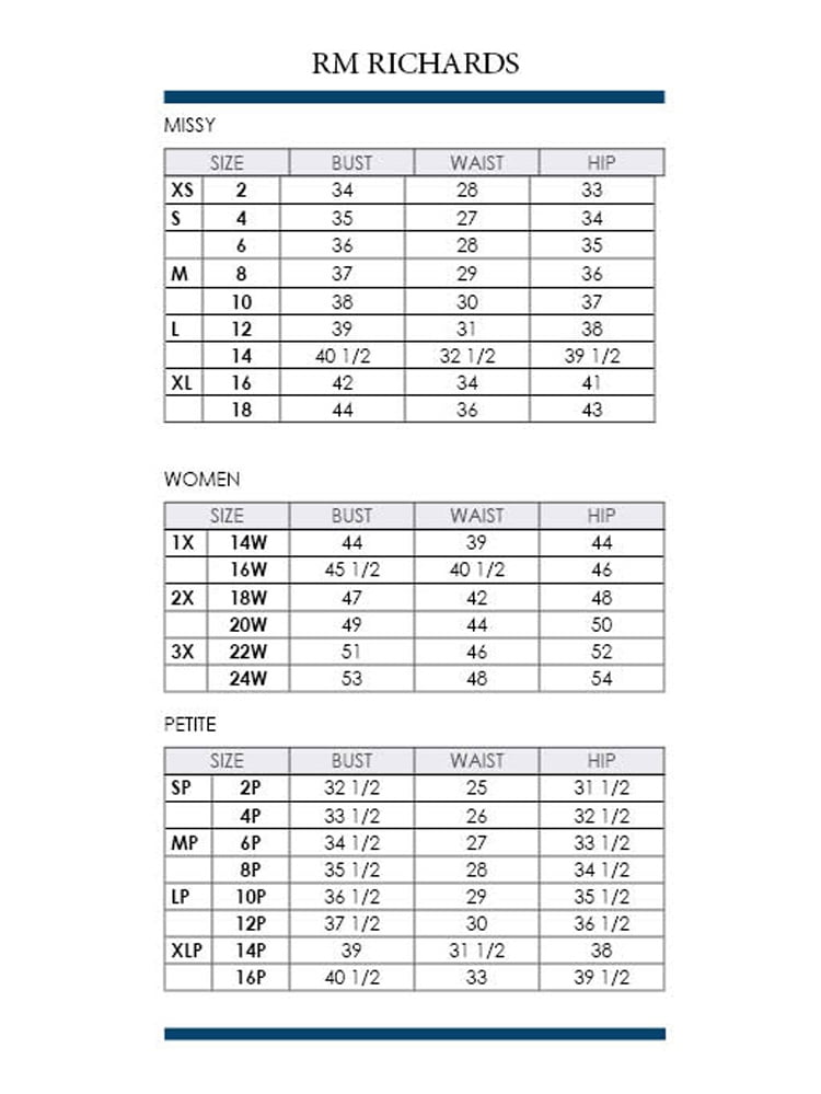 r&m richards size chart